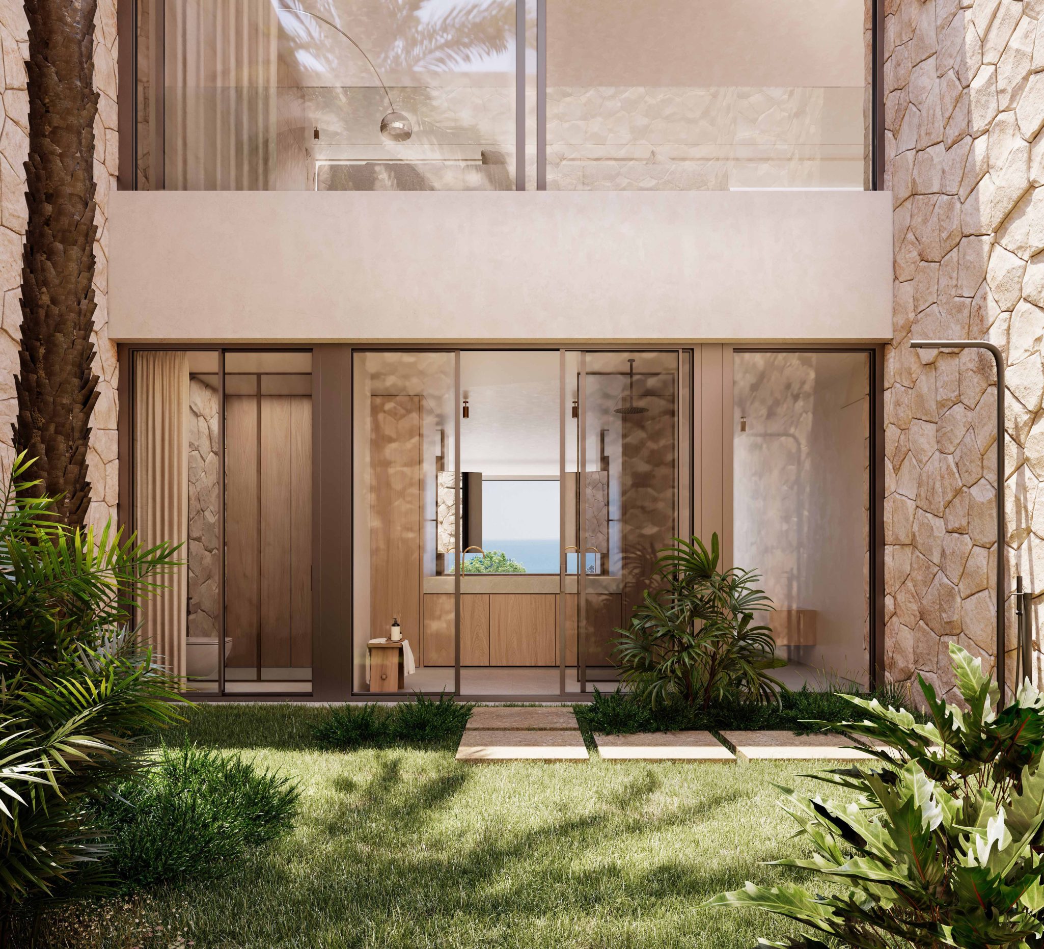 Da das Haus in das Grundstück integriert ist, entstehen zwei große Hinterhöfe, die zur Belichtung und Belüftung sowohl des Hauptgeschosses als auch der Schlafzimmer im Erdgeschoss dienen, die den Schlafbereich zur Hauptfassade hin öffnen, um die Aussicht zu genießen.