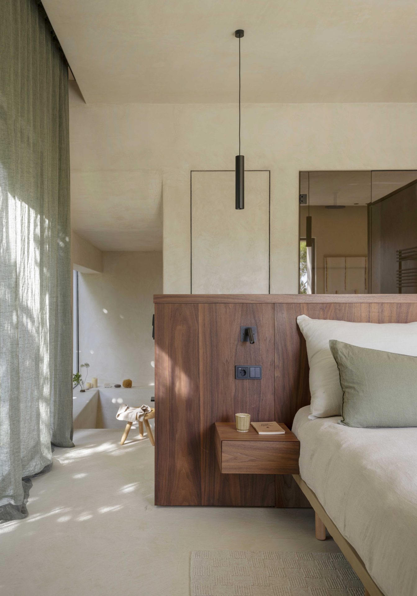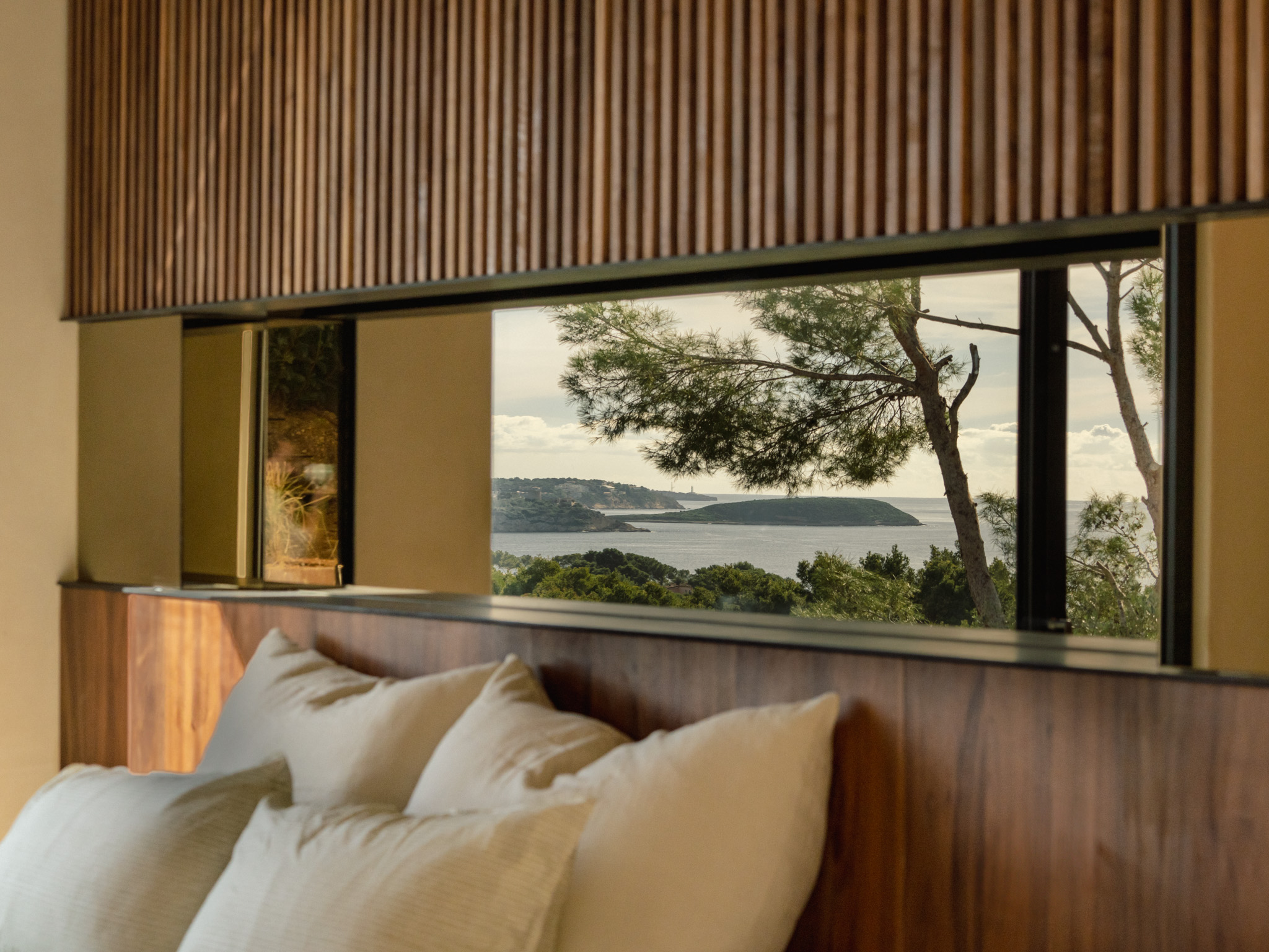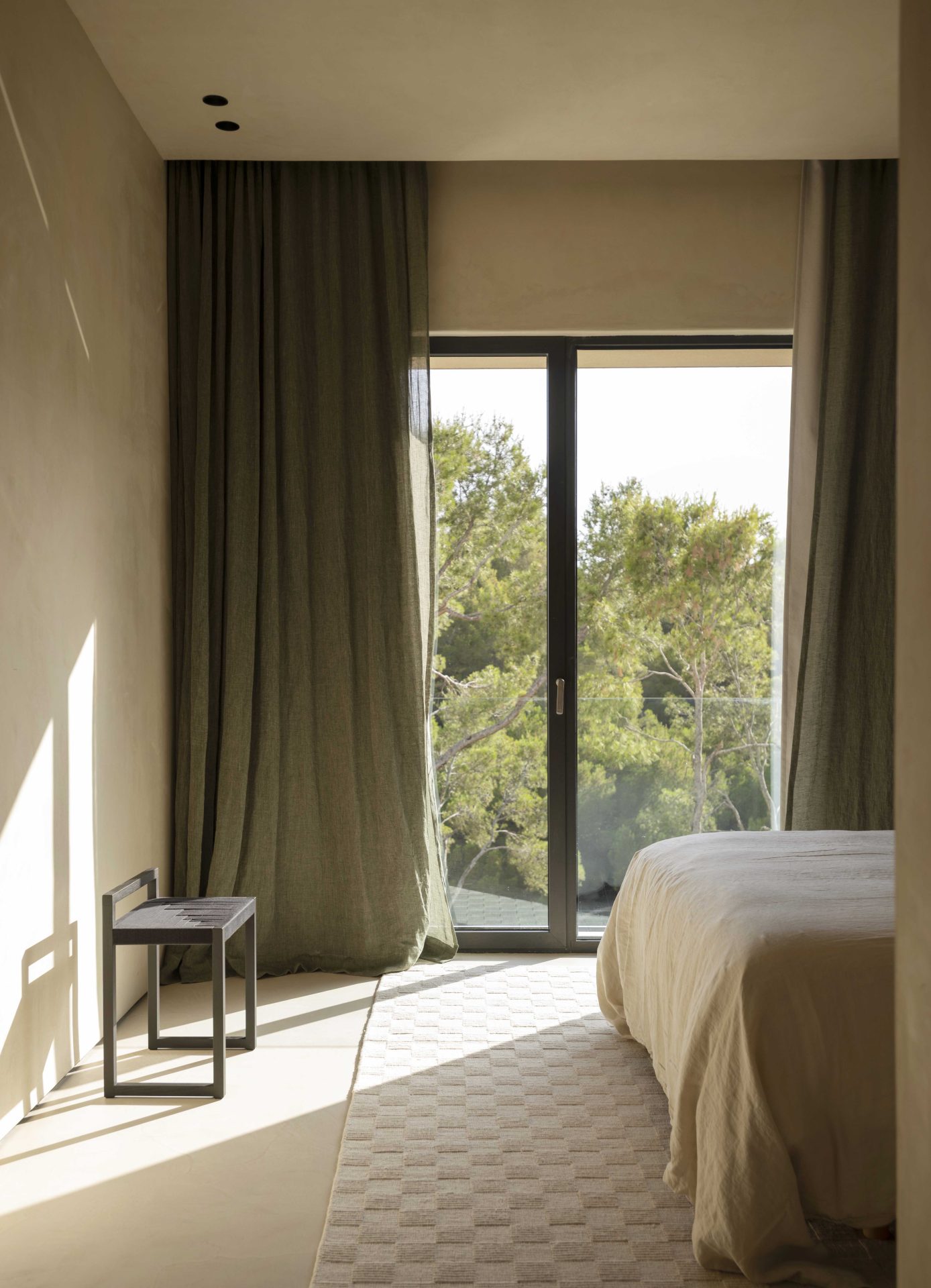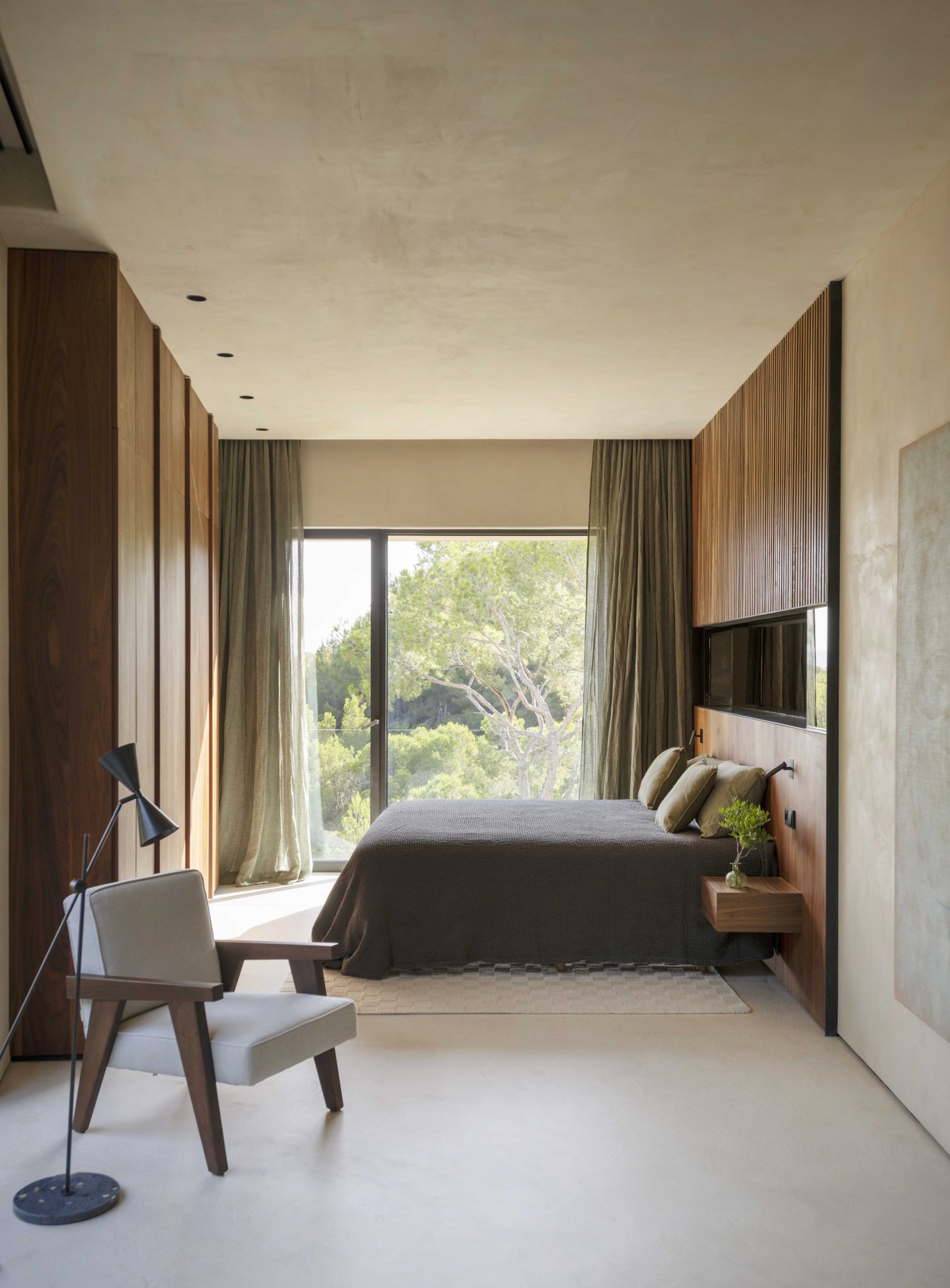 En la planta principal, se encuentra un espacio integrado que incluye salón, comedor y cocina, con amplios ventanales correderos que, al abrirse, conectan el interior con un jardín en el interior de la parcela con piscina, que disfrutar del espacio exterior y de las vistas al mar sin percibir el ruido de la autopista.