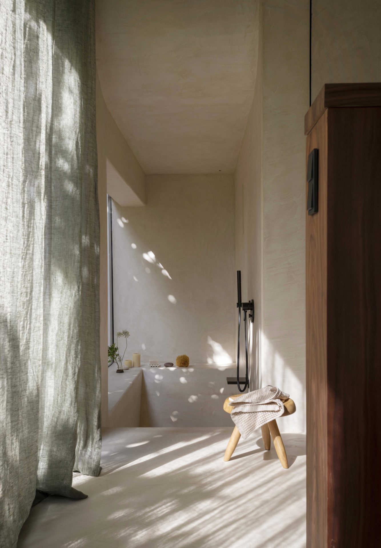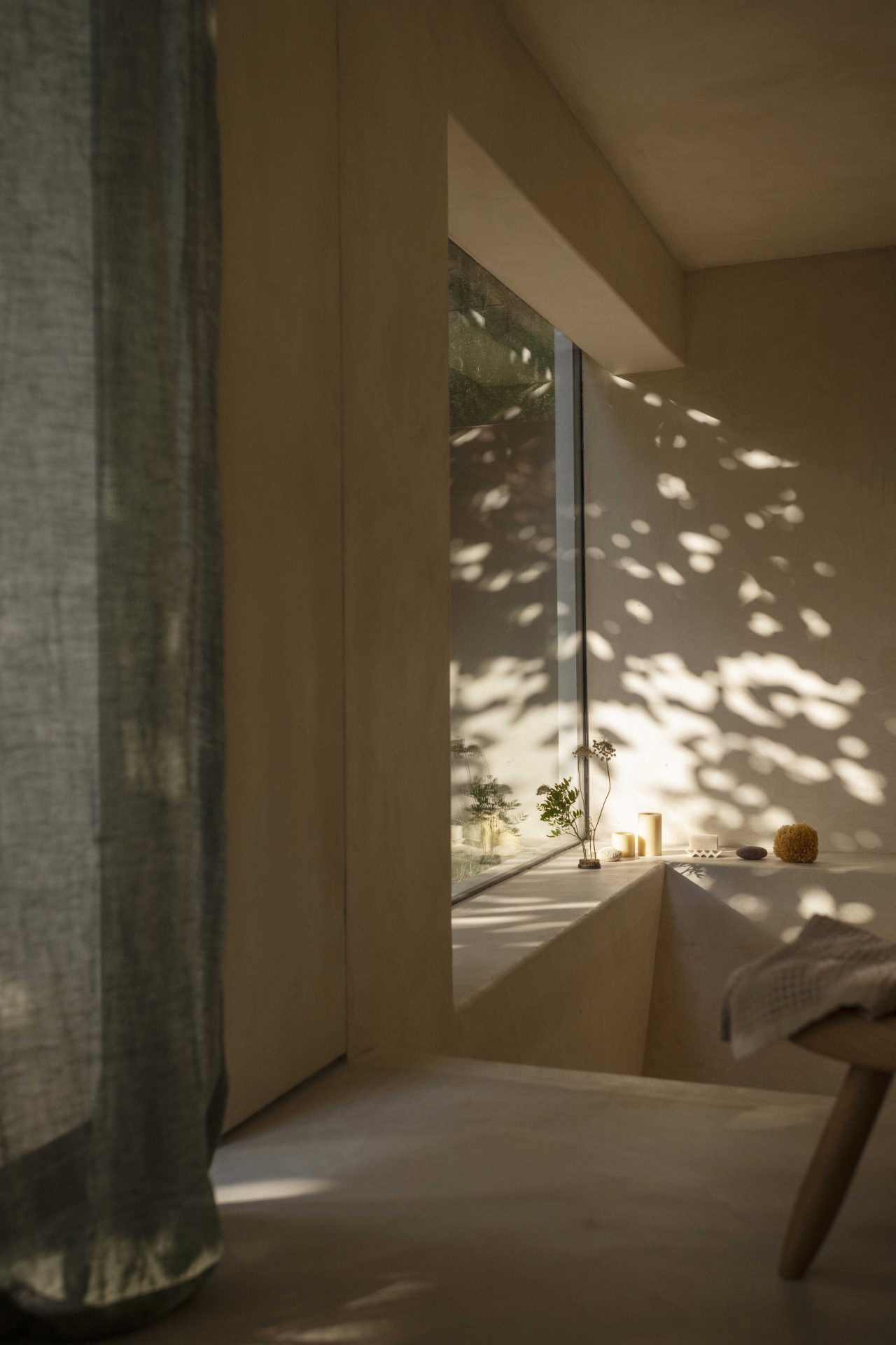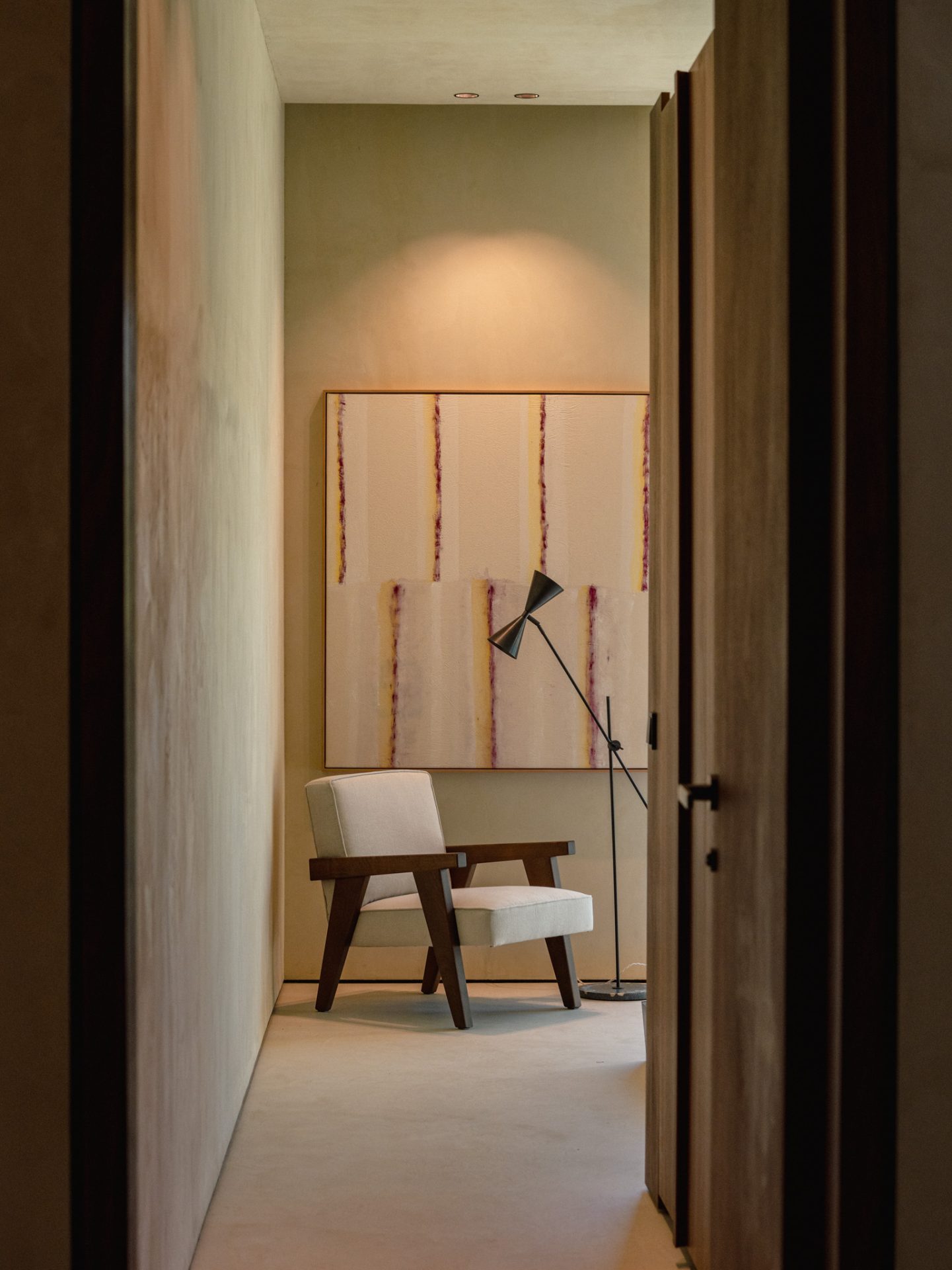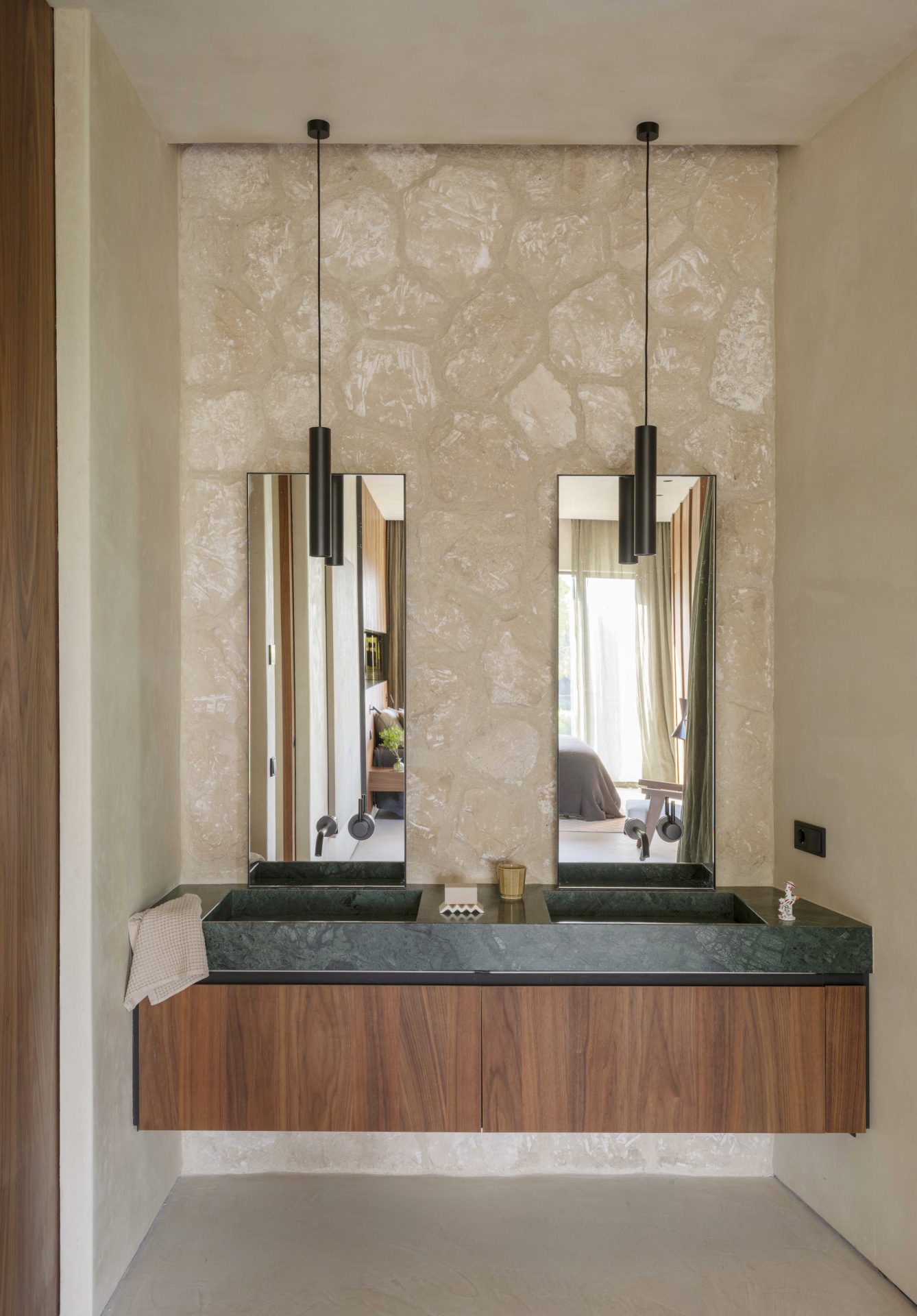 En la planta principal, se encuentra un espacio integrado que incluye salón, comedor y cocina, con amplios ventanales correderos que, al abrirse, conectan el interior con un jardín en el interior de la parcela con piscina, que disfrutar del espacio exterior y de las vistas al mar sin percibir el ruido de la autopista.